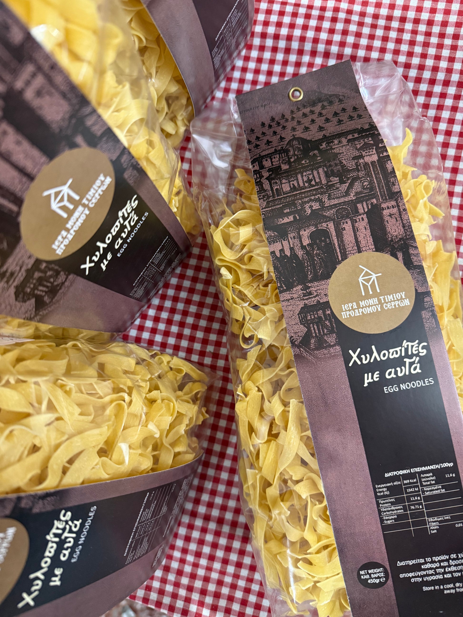 | Περιγραφή: Χυλοπίτες με αυγά, παρασκευάζεται με Παραδοσιακή μέθοδο απο την Ιερά Μονή Τιμίου Προδρόμου Σερρών.
